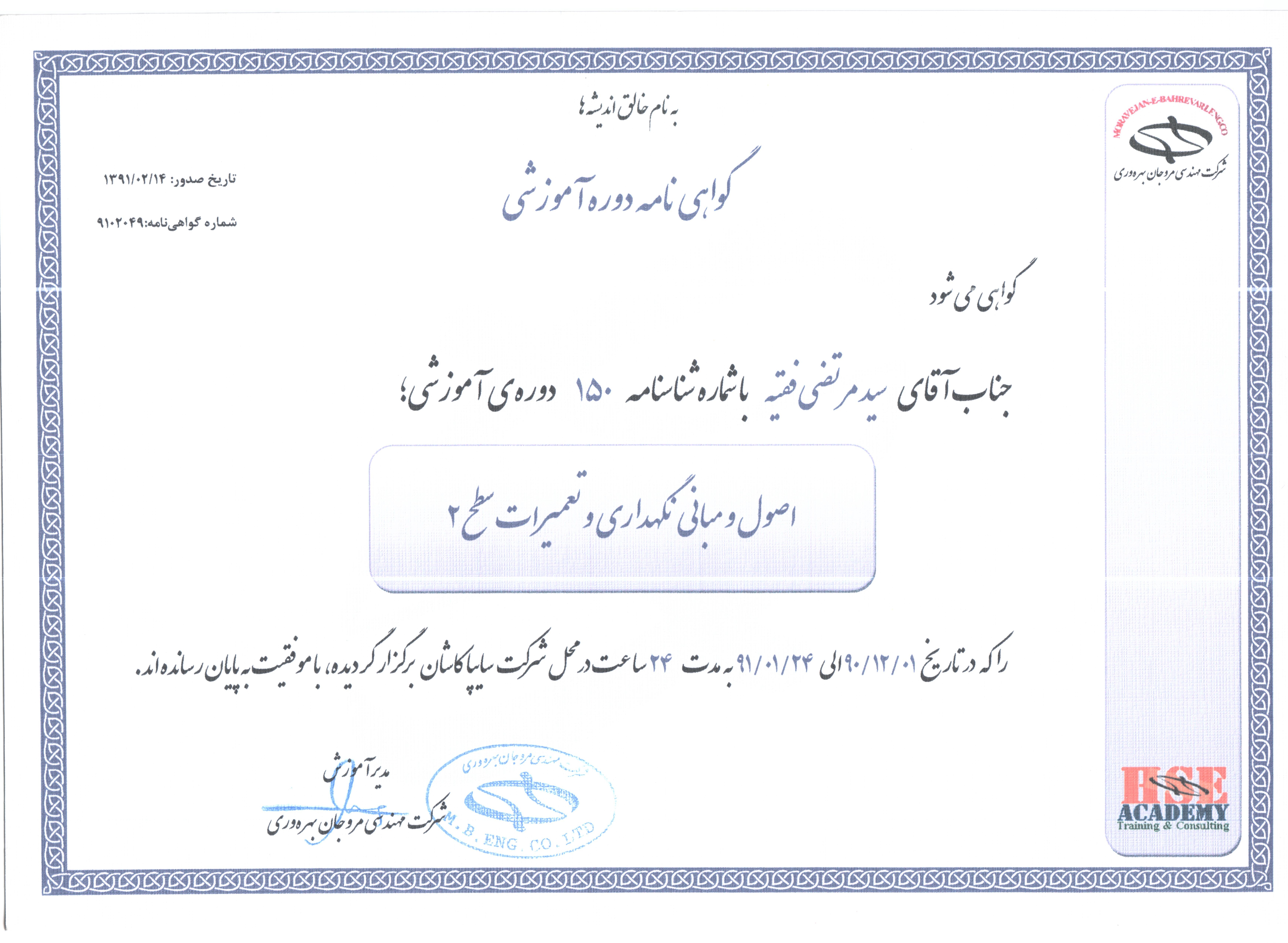 گواهینامه آموزشی اصول و مبانی نگهداری و تعمیرات